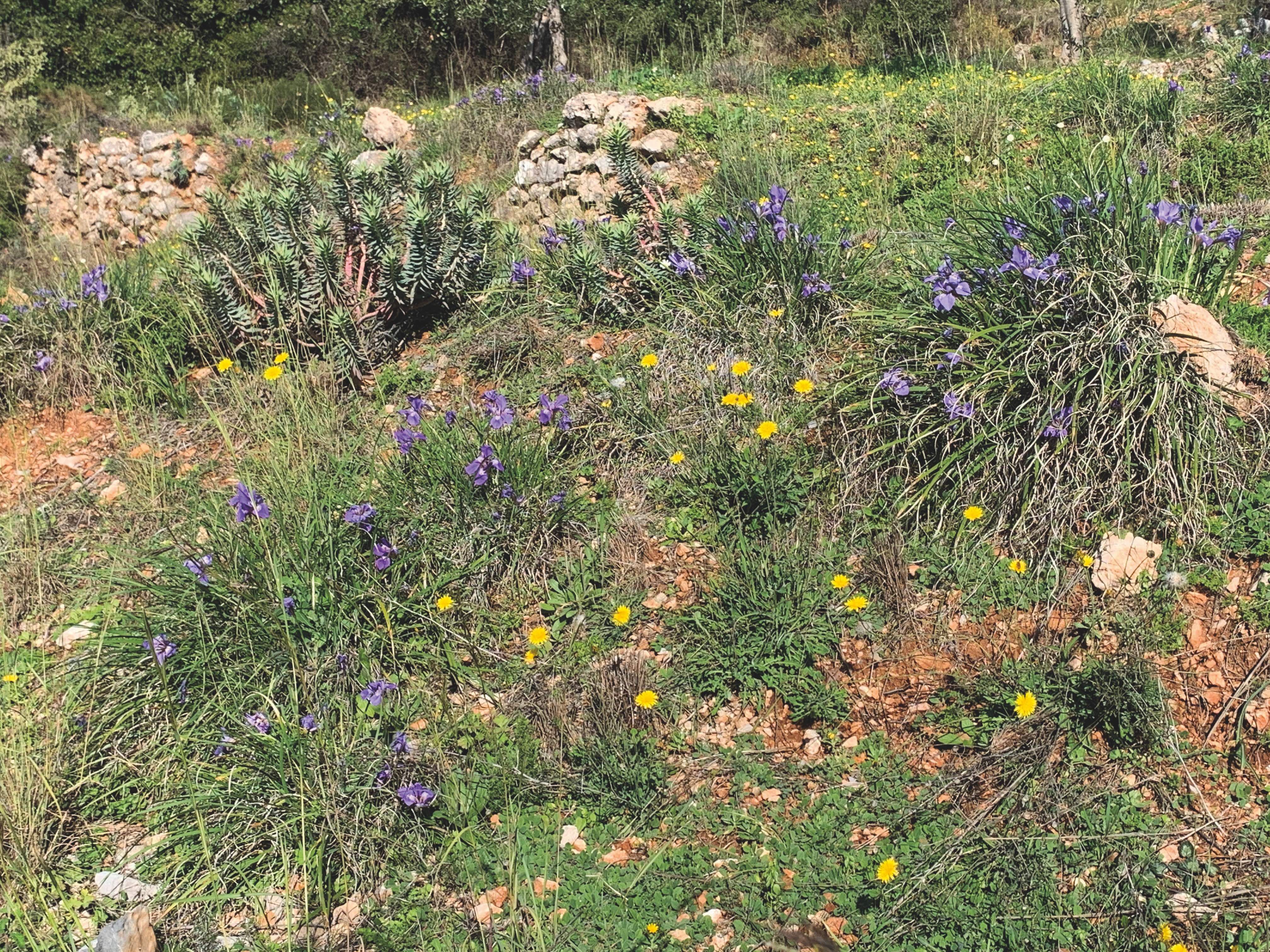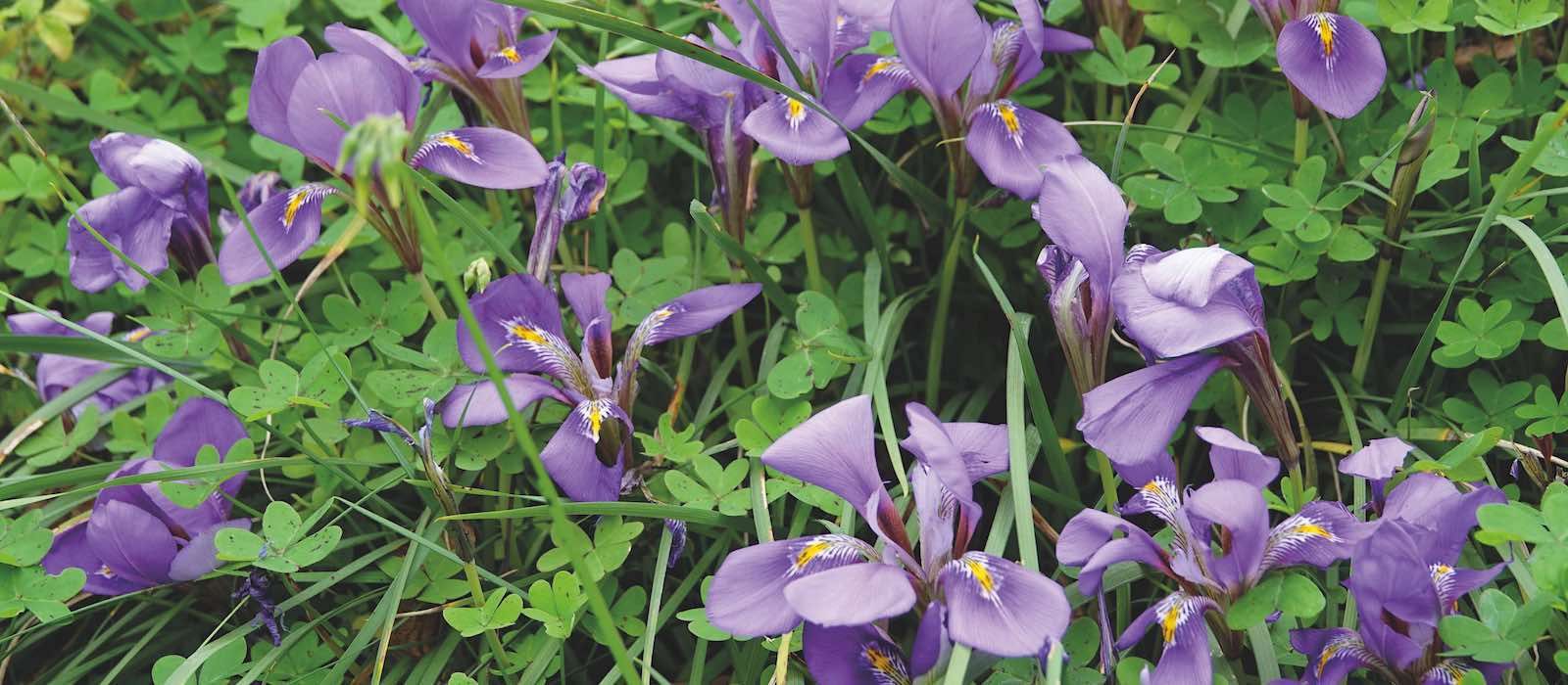 Auf der Peloponnes, der Wildpflanzenregion, mit der ich mich hier näher beschäftige, gibt es sechs Iris-Arten, unter denen ich stellvertretend die Kretische Schwertlilie – auch Algerische Iris genannt – herausgreifen will: Iris unguicularis Poir. Es handelt sich um eine so genannte Rhizom-Iris, die im Gegensatz zu den Zwiebel-Iris-Arten einen verzweigten Wurzelstock besitzt. Das ist nicht unwichtig zu wissen: Eine Rhizom-Iris wie die Iris unguicularis bevorzugt nämlich sandige und kiesig-trockene bis schwach feuchte, kargere Böden als eine Zwiebel-Iris und reagiert empfindlich auf zu viel Feuchtigkeit. Wir finden daher die Kretische Schwertlilie vor allem an vollsonnigen, warmen Standorten, deren Böden eher steinig und flachgründig sind. Dazu zählen Magerrasen und felsige Hänge, aber auch an vielen Weg- und Straßenrändern findet diese Iris Lebensräume, die ihr zusagen.