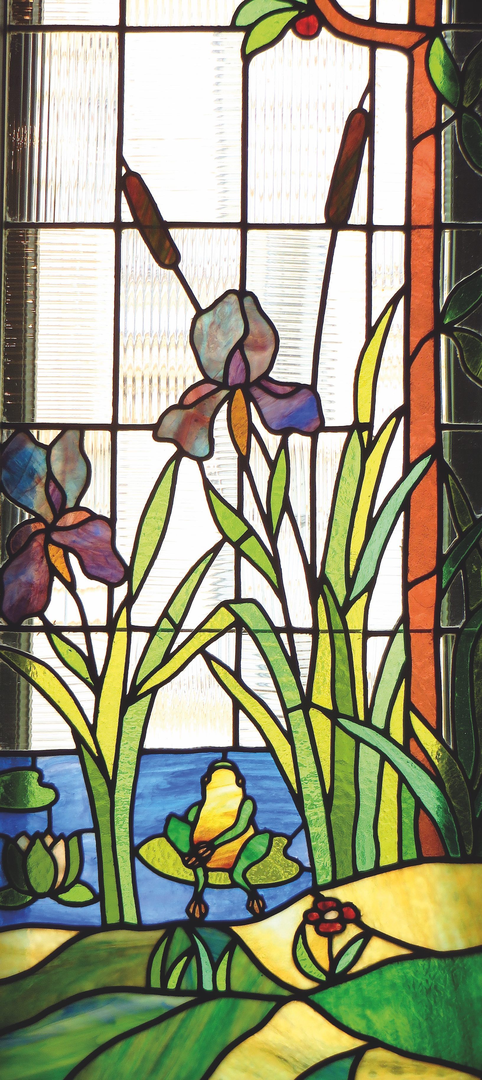 Die auffallenden Blüten haben die Iris auch zu einem beliebten Motiv von Künstlern gemacht. Besonders im Jugendstil finden sich häufig Iris-Darstellungen. Ein schönes Beispiel dafür habe ich in Riga entdeckt: ein Fenster mit einer Darstellung von Schwertlilien und Rohrkolben.
