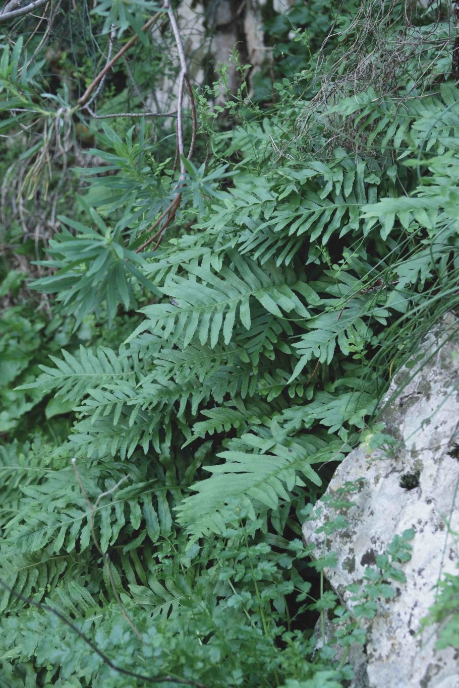 Hier geht es um einen Farn, der von Südwesteuropa bis Vorderasien zwar weit verbreitet ist, aber aufgrund seiner Standortansprüche doch nur stellenweise zu finden ist: Der Südliche Tüpfelfarn (Polypodium cambricum L. subsp. cambricum) ist ein – wie ich finde – sehr attraktiver Farn, der im Herbst neue Wedel bildet, deren frisches Grün in Schluchten und an Felswänden den mediterranen Winter schmückt. Auch kulturgeschichtlich spielt dieser Farn eine interessante Rolle – zumindest war das über viele Jahrhunderte der Fall.