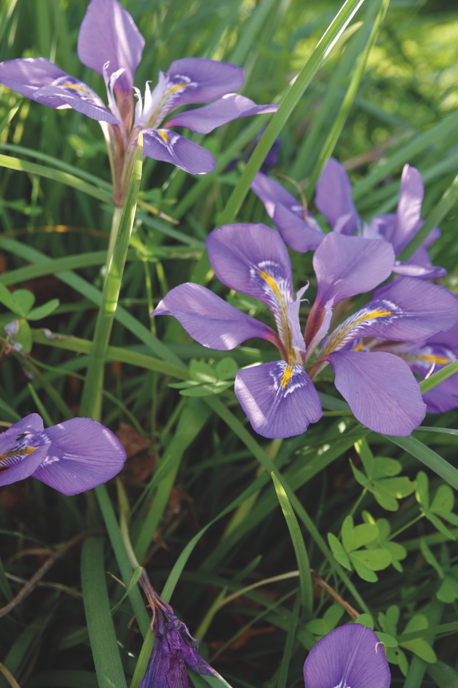 Auf der Peloponnes, der Wildpflanzenregion, mit der ich mich hier näher beschäftige, gibt es sechs Iris-Arten, unter denen ich stellvertretend die Kretische Schwertlilie – auch Algerische Iris genannt – herausgreifen will: Iris unguicularis Poir. Es handelt sich um eine so genannte Rhizom-Iris, die im Gegensatz zu den Zwiebel-Iris-Arten einen verzweigten Wurzelstock besitzt. Das ist nicht unwichtig zu wissen: Eine Rhizom-Iris wie die Iris unguicularis bevorzugt nämlich sandige und kiesig-trockene bis schwach feuchte, kargere Böden als eine Zwiebel-Iris und reagiert empfindlich auf zu viel Feuchtigkeit. Wir finden daher die Kretische Schwertlilie vor allem an vollsonnigen, warmen Standorten, deren Böden eher steinig und flachgründig sind. Dazu zählen Magerrasen und felsige Hänge, aber auch an vielen Weg- und Straßenrändern findet diese Iris Lebensräume, die ihr zusagen.