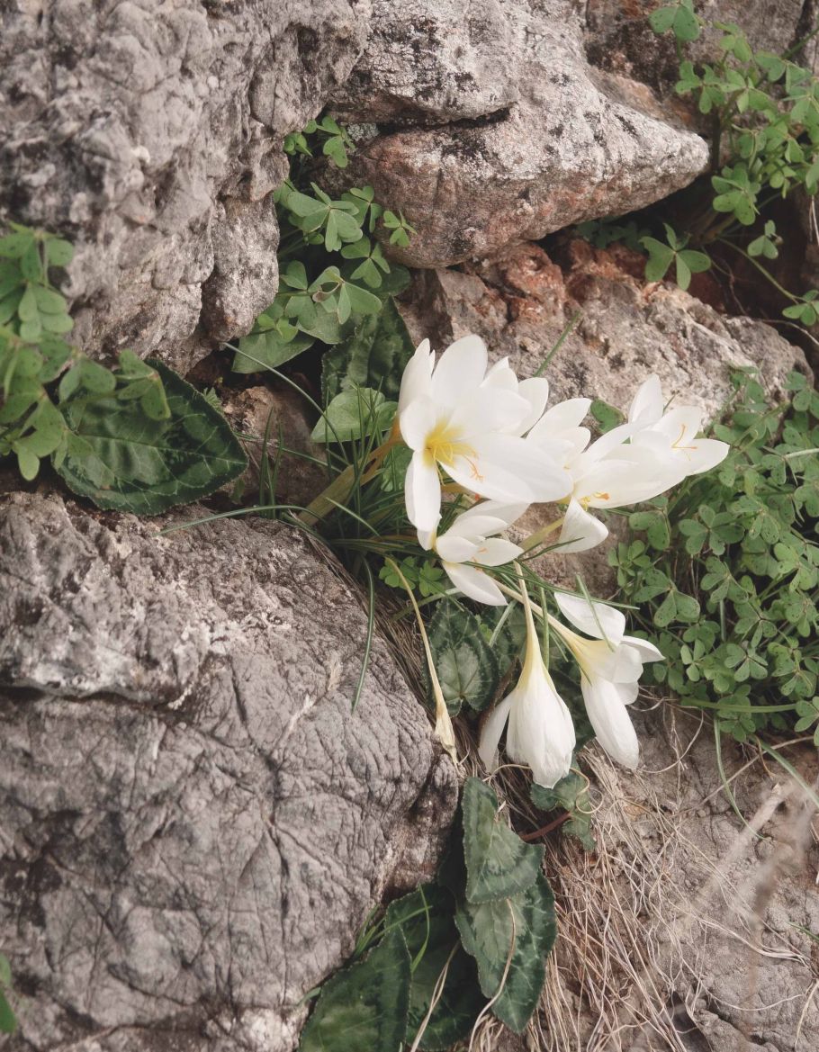 In Mittel- und Nordeuropa verbinden wir den Krokus mit dem Ende des Winters, freuen uns auf das Frühjahr und längere, wärmere Tage. Im Mittelmeerraum, der Heimat der meisten Krokus-Arten, ist diese Zuordnung weit weniger deutlich. Hier finden wir in dieser Gattung auch etliche Herbstblüher wie zum Beispiel den Boryi-Krokus, eine Art, die ab etwa Ende Oktober oder Anfang November zu blühen beginnt. Zwischen Felsen und den niedrigen, immergrünen Sträuchern der trockenen Phrygana, auf Grasland und felsigen Hängen mit durchlässigen, sich gut erwärmenden Böden entwickeln sich mancherorts große Bestände dieser kleinen, mehrjährigen Blütenpflanze.