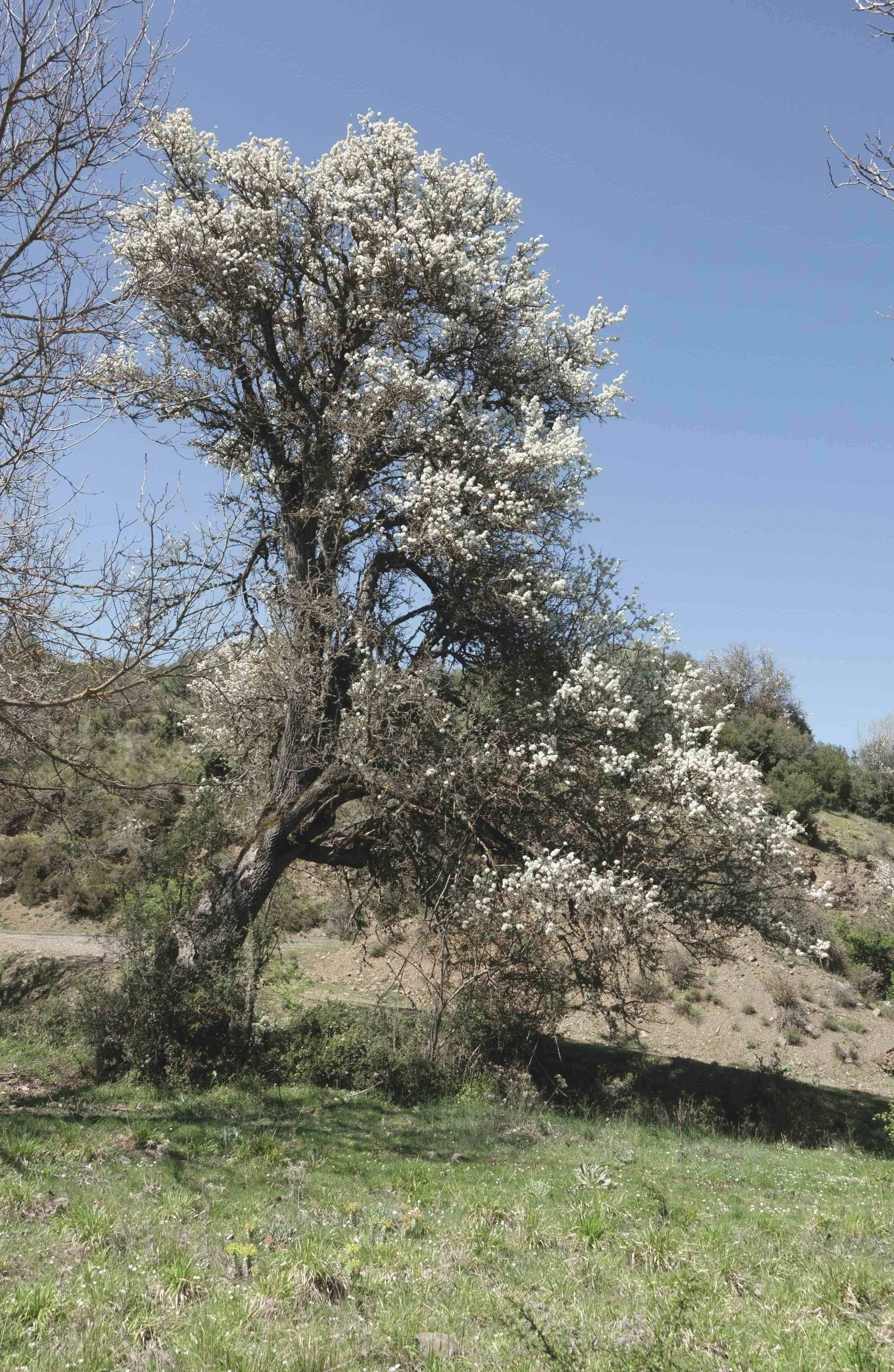 Wer im Frühjahr in bestimmten Teilen Griechenlands wie etwa in Arkadien (Peloponnes) unterwegs ist, kann immer wieder größere, auffallend weiß blühende Bäume entdecken: Holzbirnen (Pyrus pyraster (L.) Burgsd.). Mitunter sind es sehr alte und eindrucksvolle Baumgestalten, denn im Gegensatz zu Kulturformen (Sorten) können Holzbirnbäume über 100, gelegentlich sogar bis etwa 200 Jahre alt werden.